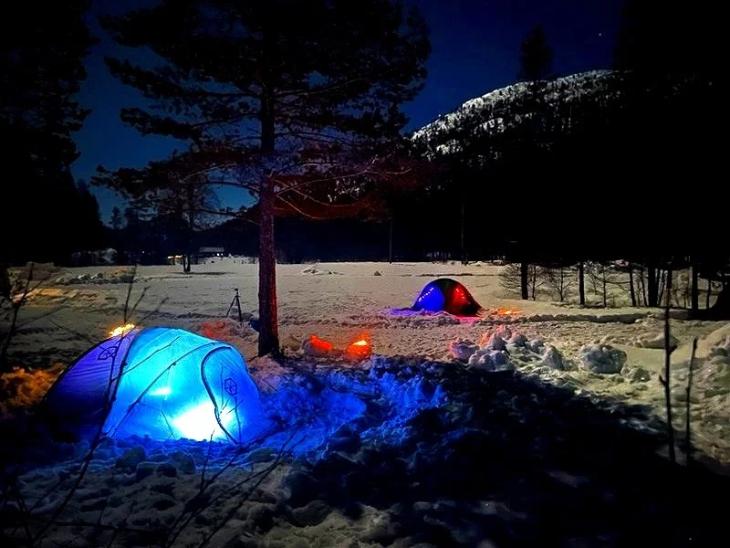 Camping in Norway’s winter wilderness is an adventure like no other. Under a starry night sky, glowing tents rest on snow-covered ground, surrounded by mountains and pine trees. Facing subzero temperatures, this experience blends beauty, survival, and the thrill of cold-weather adventure.