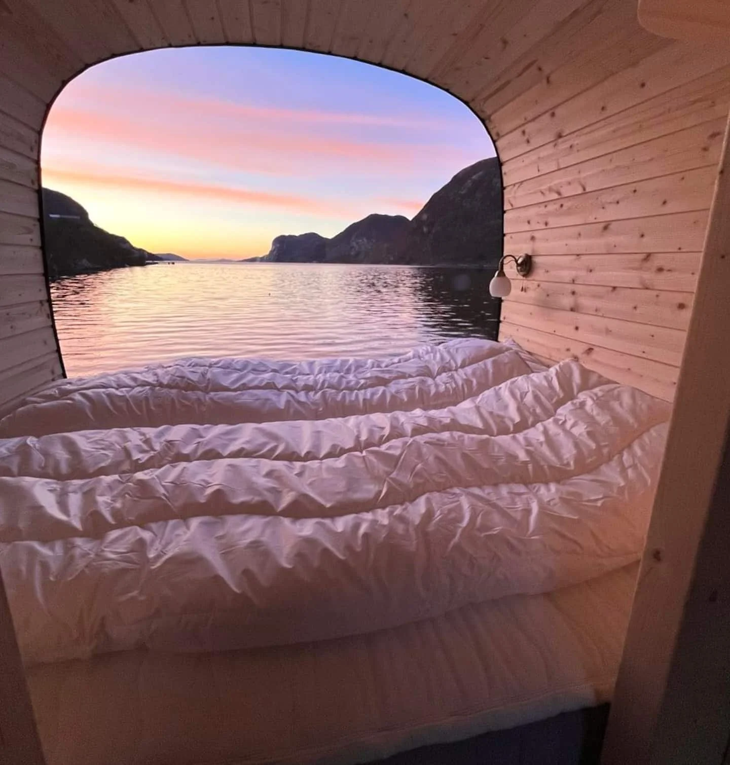 The Barrel Cabin with 180° Fjord Views – Now, I haven’t stayed in the barrel cabin yet (emphasis on "yet"), but I did peep through the window like a curious traveler. And let me tell you—it looks like the dreamiest place to wake up in. Imagine sipping your morning coffee with a panoramic view of the fjord. On my birthday, this is where I’ll be—wine in hand, cake on the table, soaking in pure bliss.
