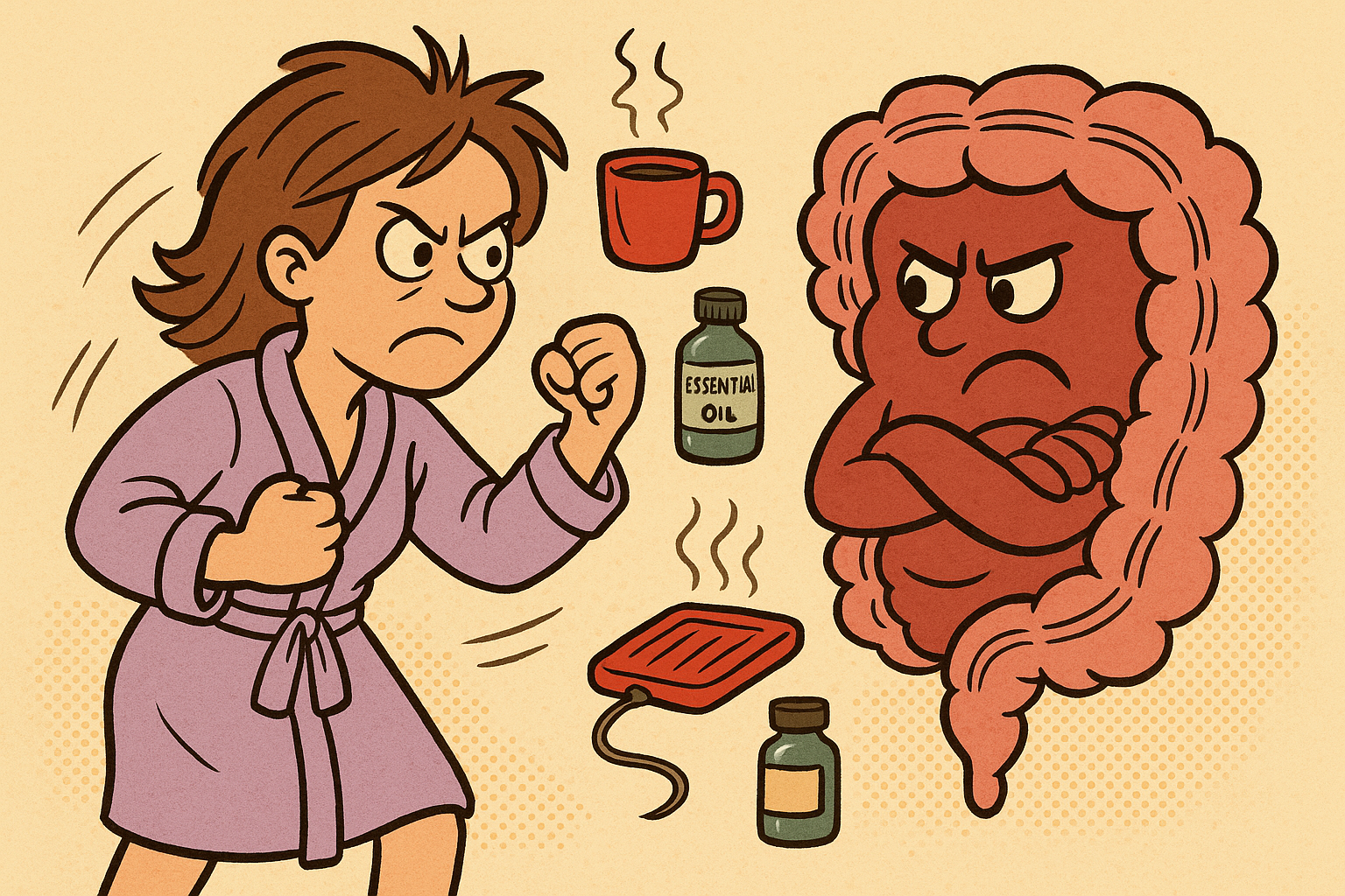 Then came the ancient wisdom: hot water therapy. I pulled out my heating pad and summoned the ancestors. It was no longer about wellness—it was a bowel exorcism ritual.