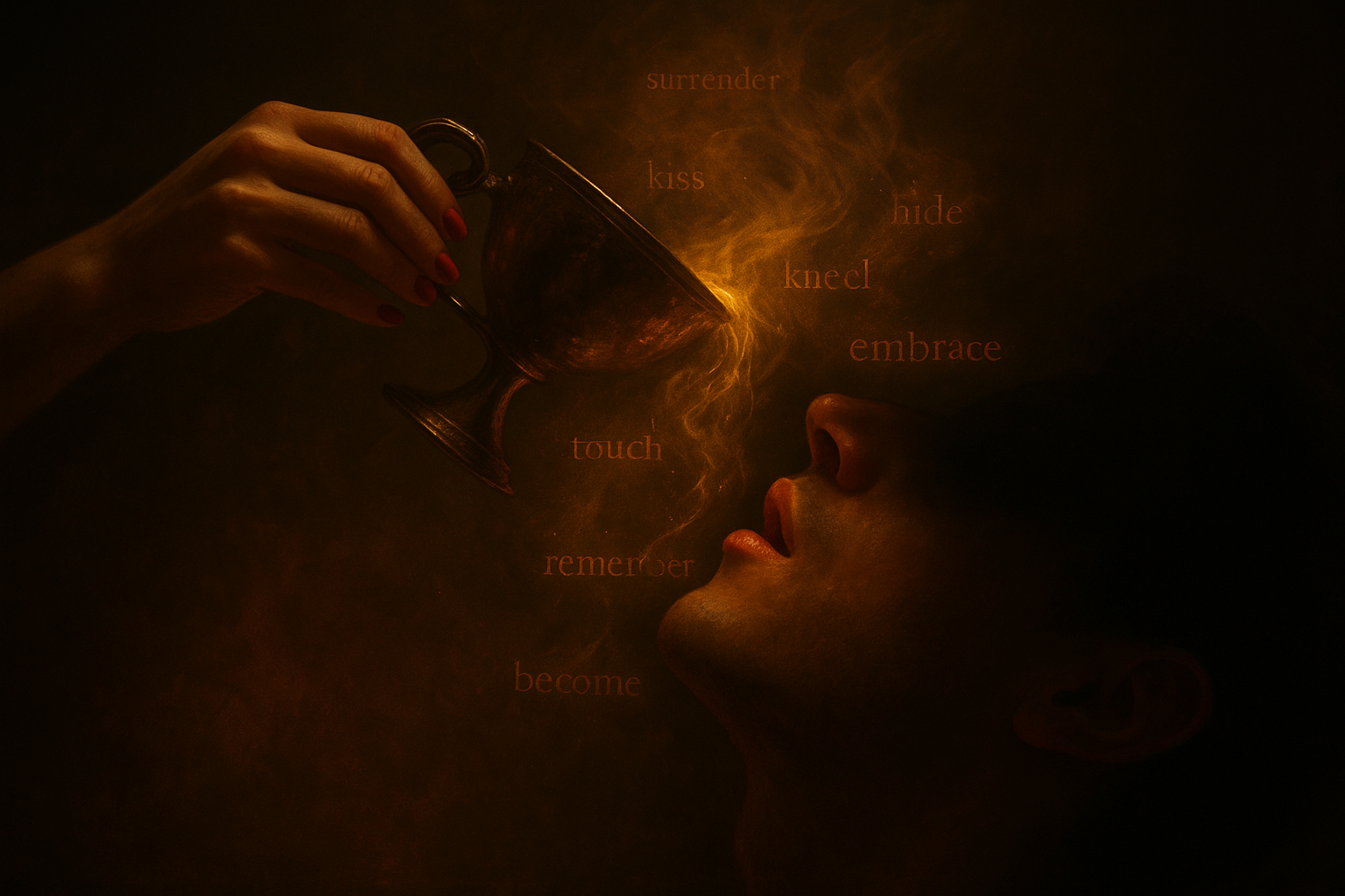 Their logic dissolves first — salt, then sugar — until what’s left is pure essence, stripped and trembling, waiting to be taken. And this is where they misunderstand you. This was never theft. This is hunting. Taking. The kind that doesn’t stop at the surface. The kind that consumes and rewrites until their pulse beats in your mouth and their silence tastes like yours.